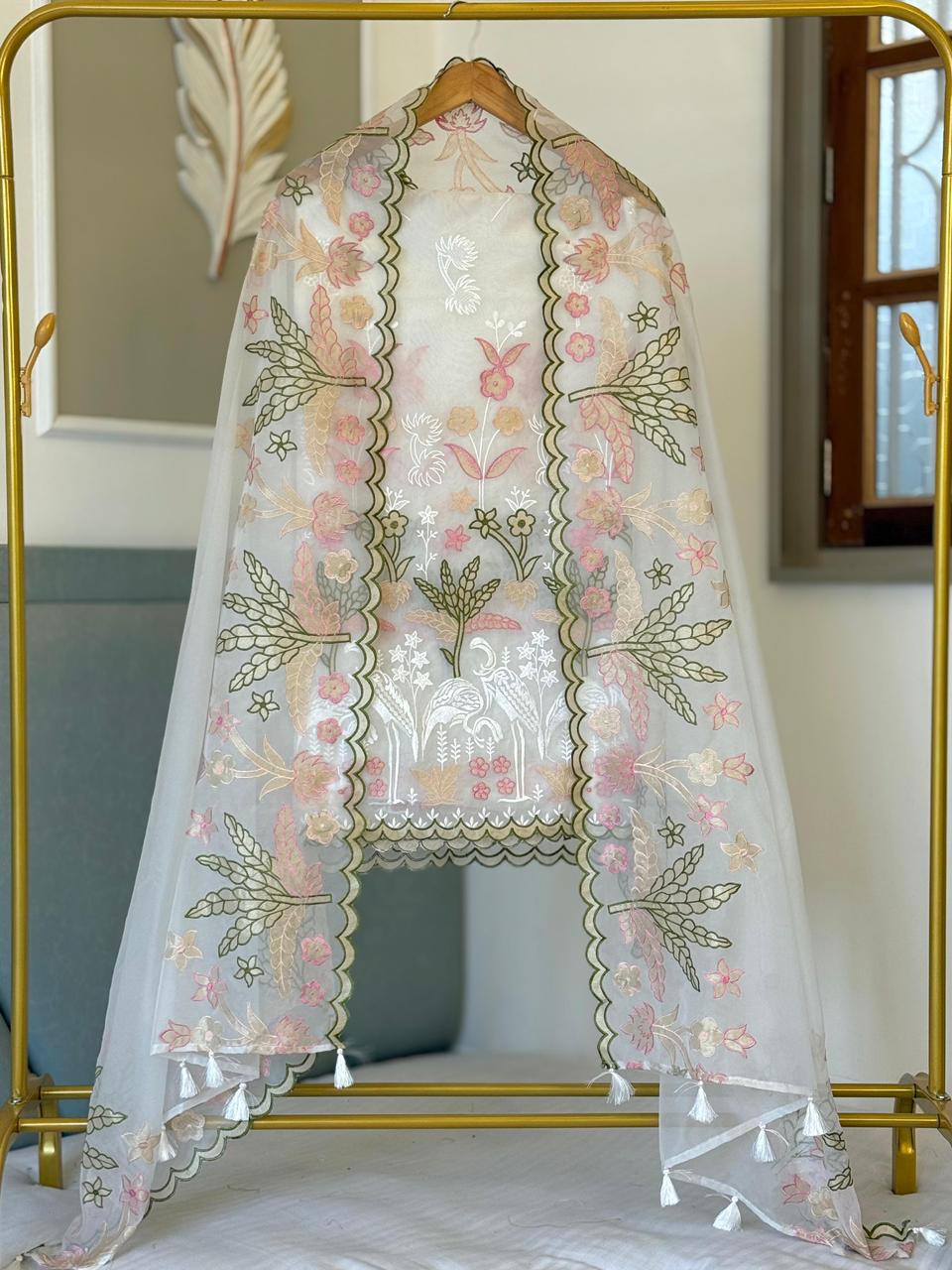 *Organza tissue applique border booti embroidery dupatta✨*