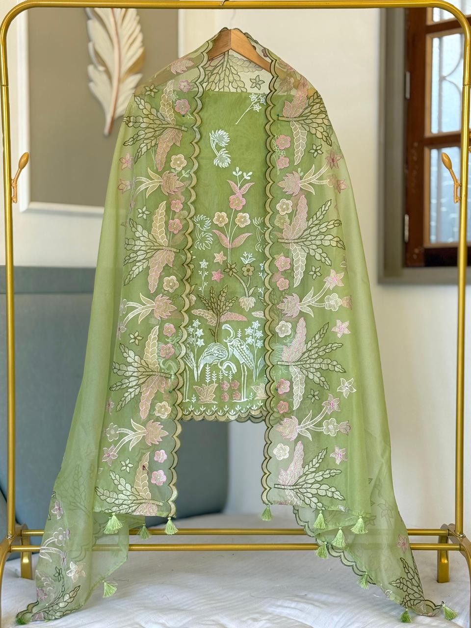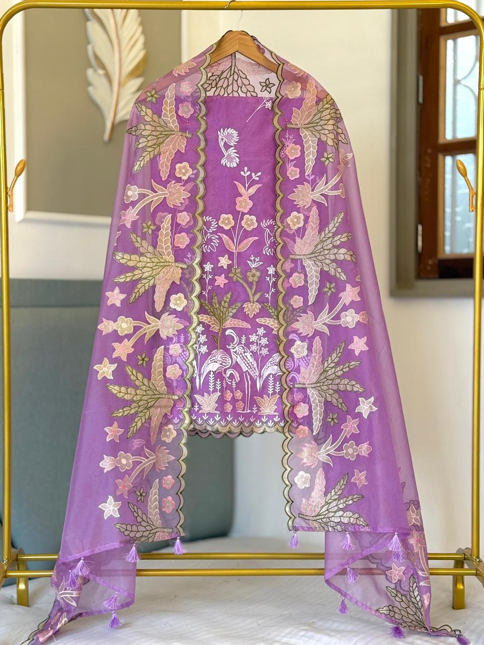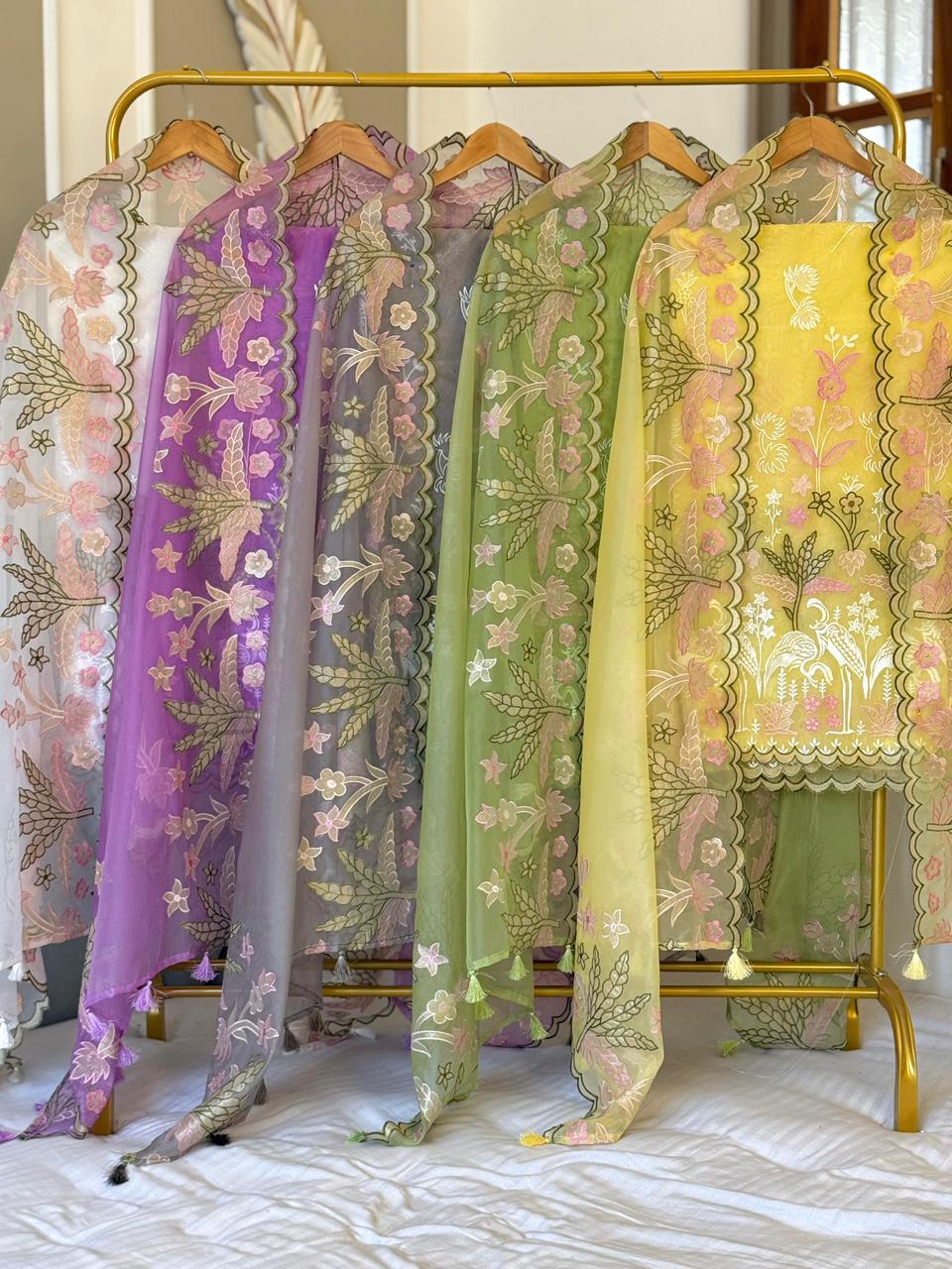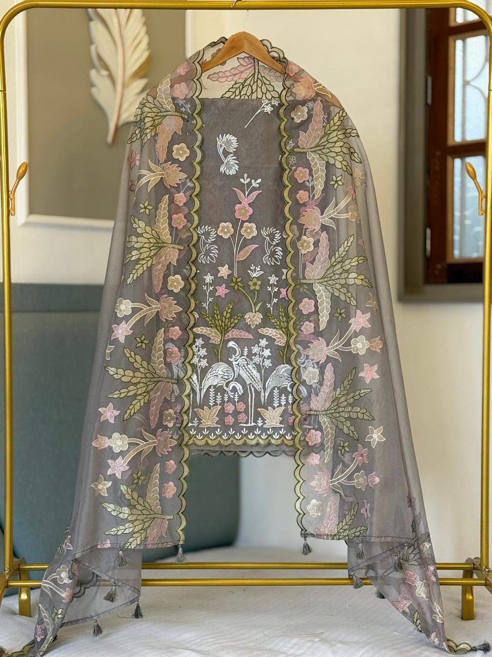 *Organza tissue applique multi embroidery daman booti work top✨*