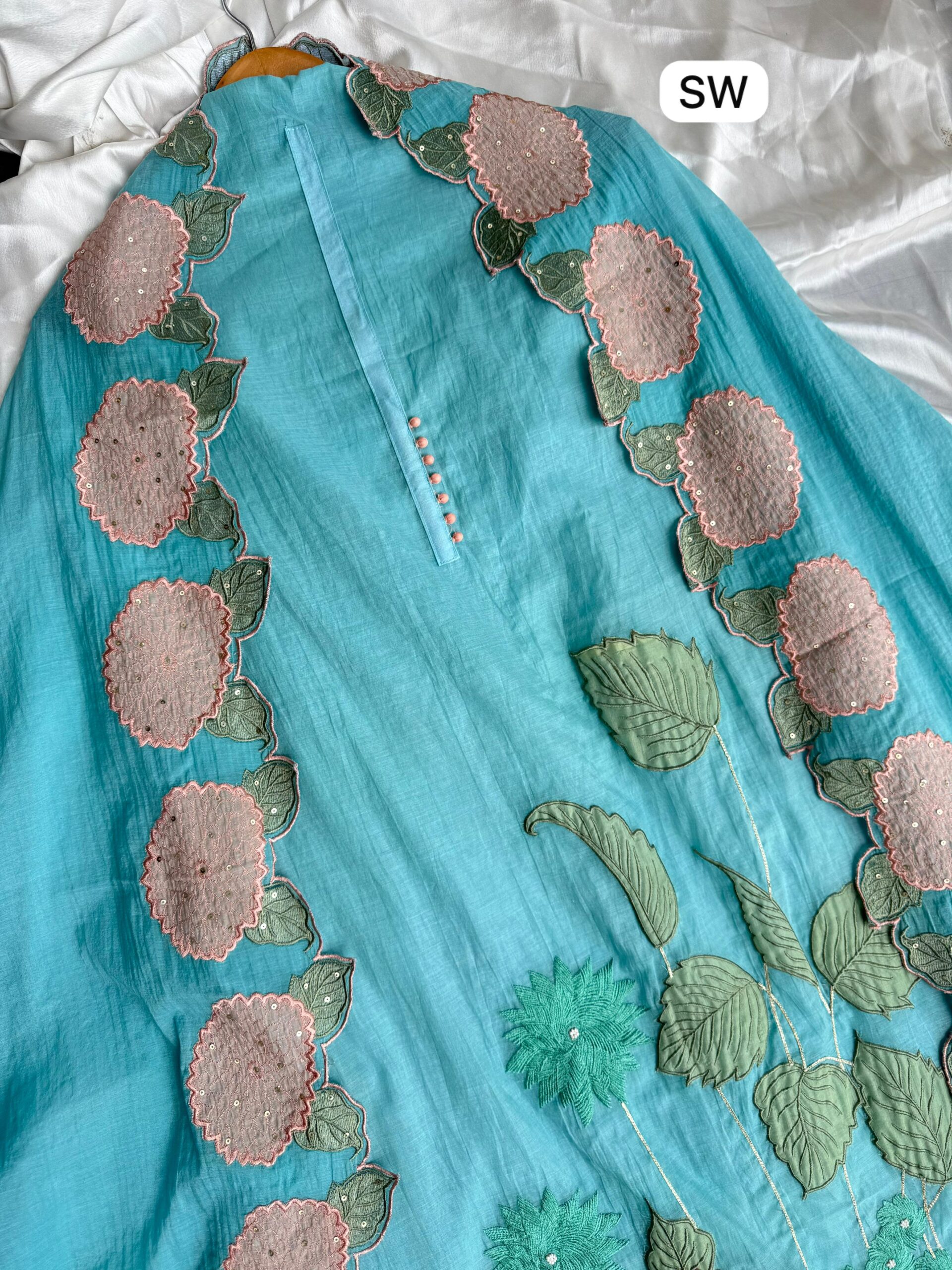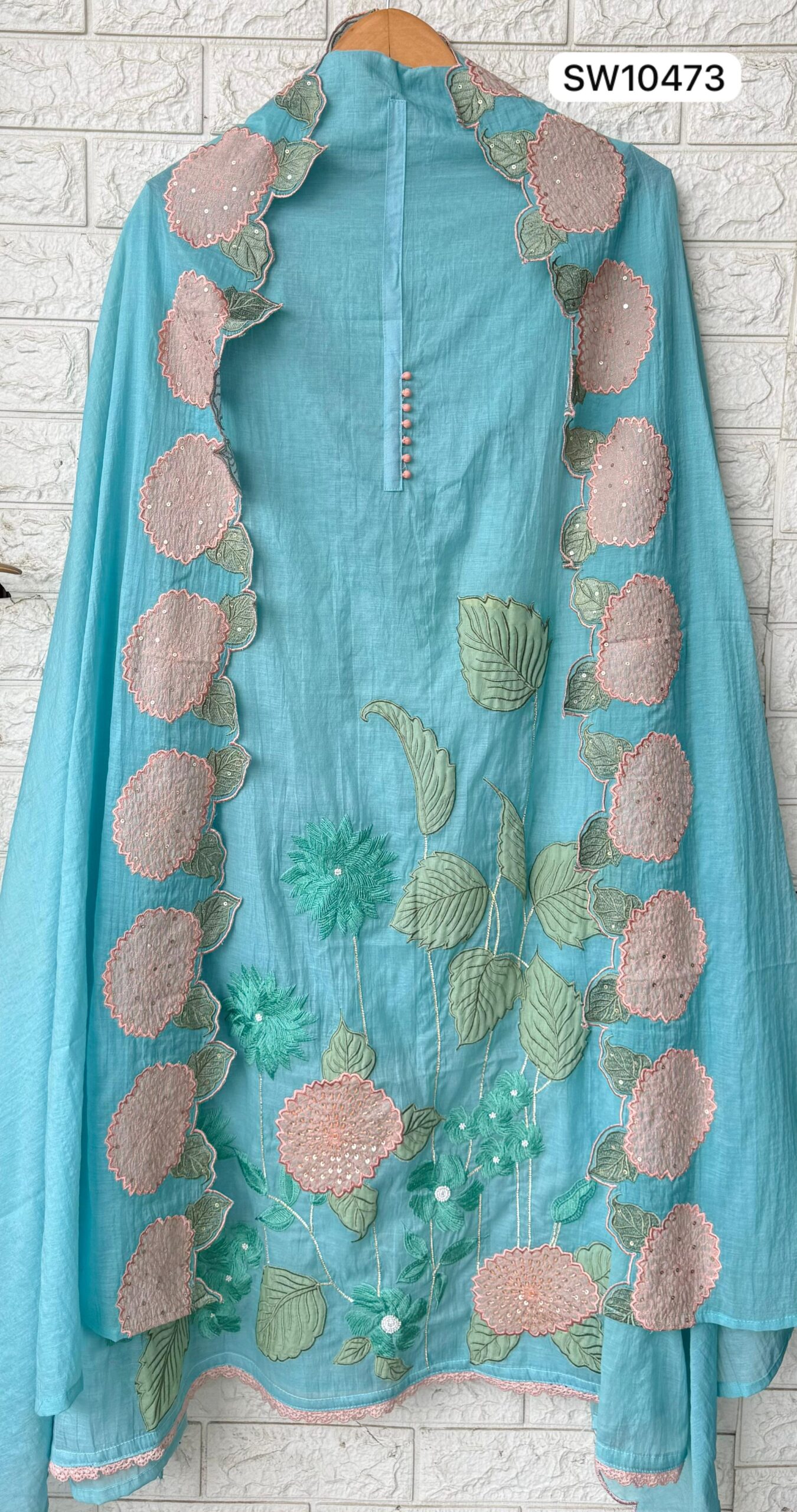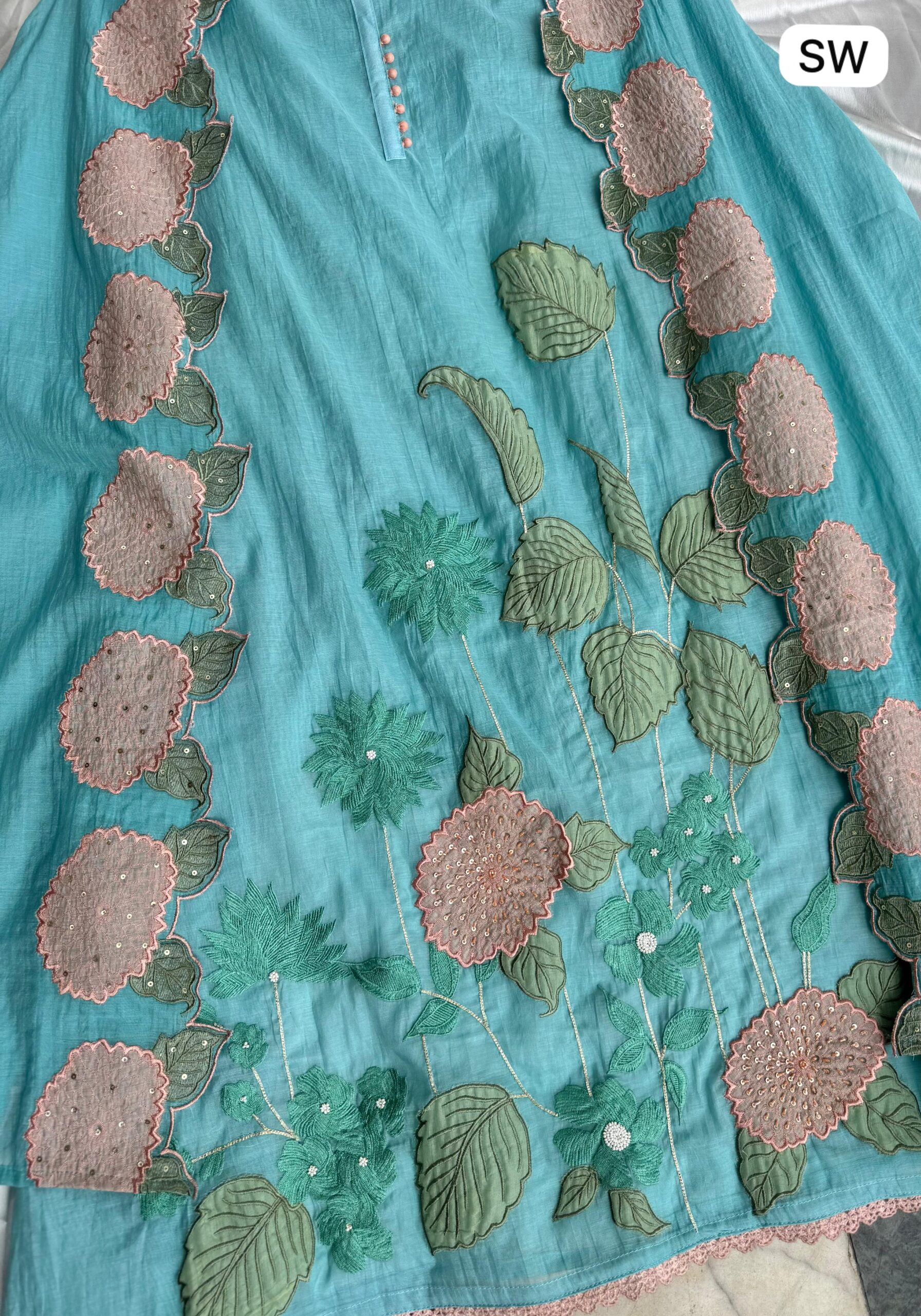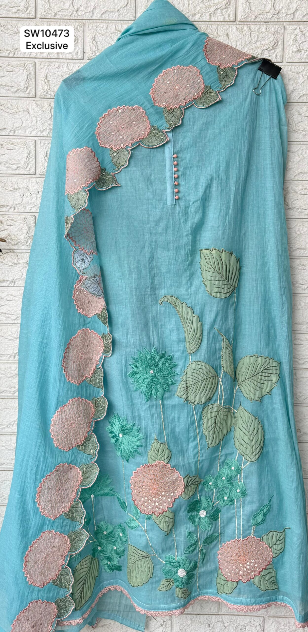Pure mal fully unstitched top with beautiful and neat work (embroidery, handwork, patch & lace)
