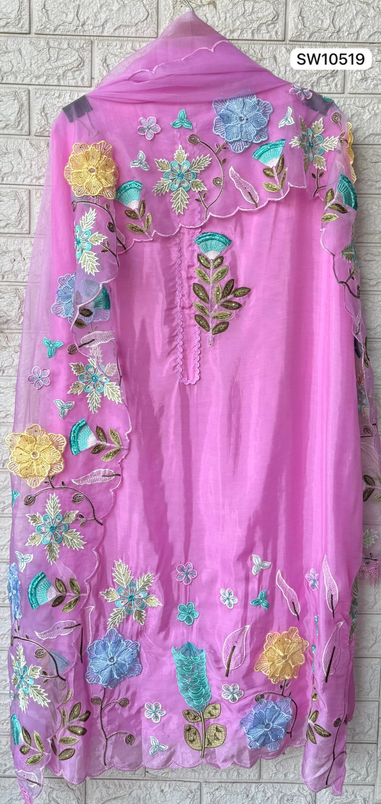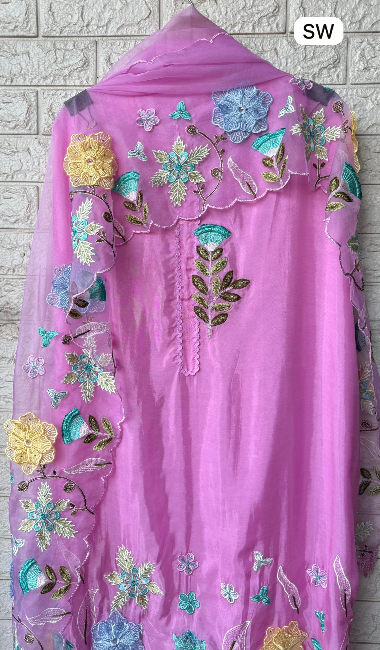 Organza duoatta with work and scalloping borders