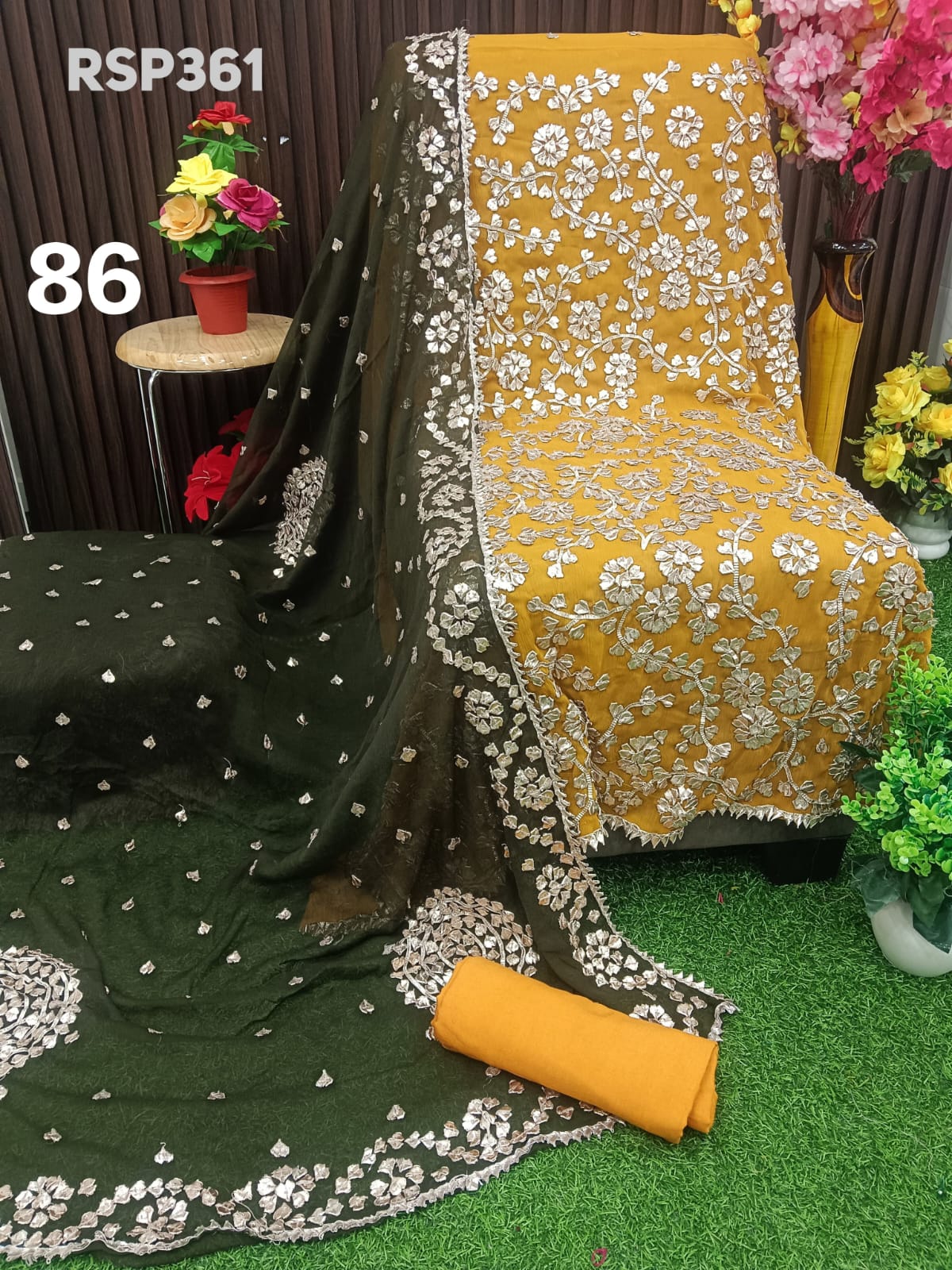 *Pakistani Bemberg Chiffon handwork heavy LCD gota embroidery 3 piece Suit*